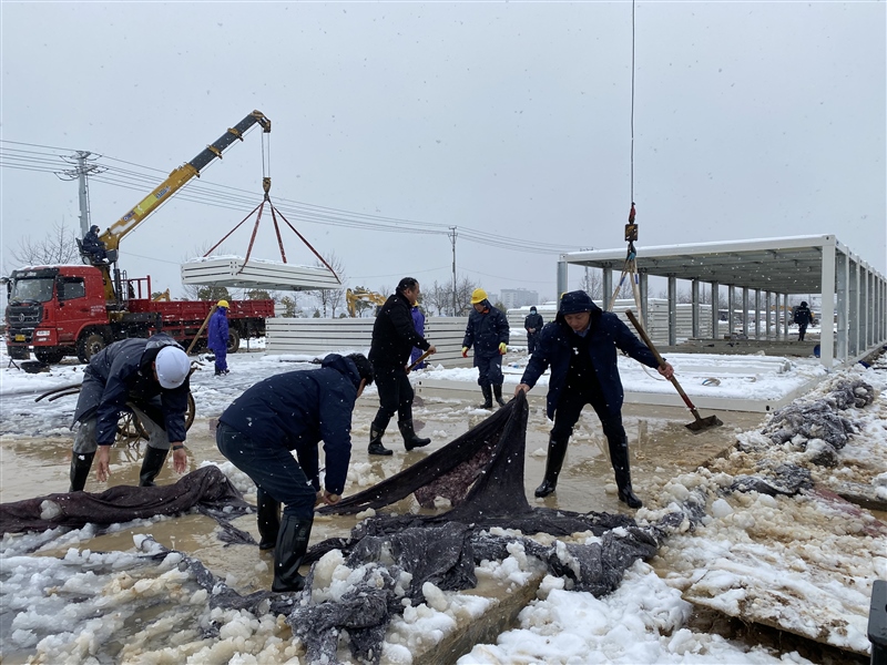 2月7日(農(nóng)歷正月初七),冬雪紛紛、寒風(fēng)瑟瑟,惡劣的天氣并未阻擋隔離點(diǎn)項(xiàng)目各參建單位的激情和干勁。中午12時(shí)40許,監(jiān)理單位在現(xiàn)場(chǎng)開展巡查,鰲峰建設(shè)在項(xiàng)目部組織施工會(huì)商工作。下午,國資集團(tuán)黨員突擊隊(duì)、志愿服務(wù)隊(duì)主動(dòng)請(qǐng)“戰(zhàn)”,步履匆匆赴現(xiàn)場(chǎng)鏟雪除冰。副區(qū)長王劍赴現(xiàn)場(chǎng)督查指導(dǎo)工作并對(duì)項(xiàng)目進(jìn)度表示肯定。